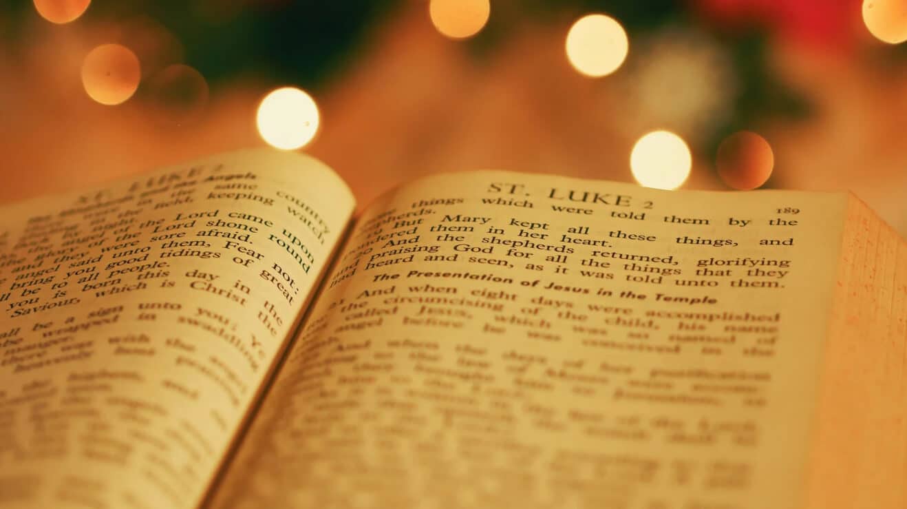 Family celebrating christmas together, reading a book, image for blog entry of christian writer